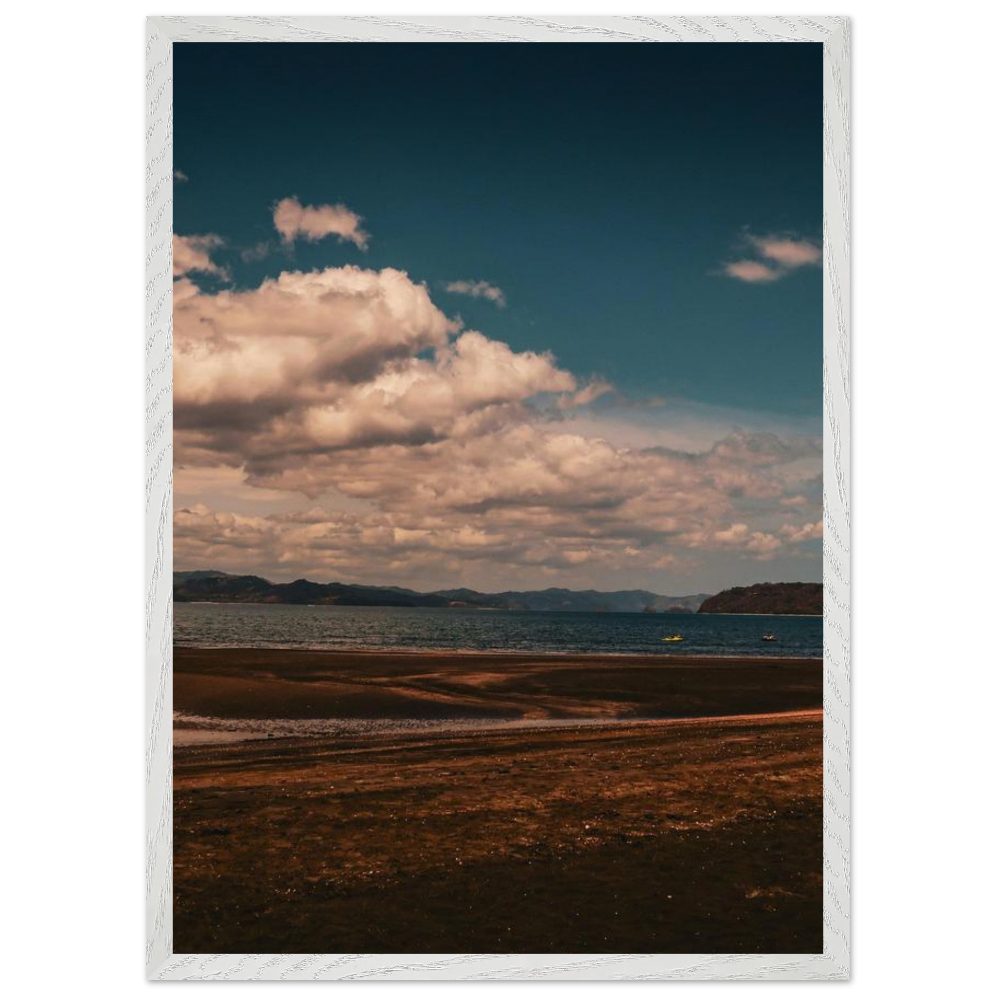 Escape to a tranquil coastal dreamscape where the ocean meets a vast, open sky. This captivating premium framed poster, “Coastal Dreamscape,” brings the serene beauty of a wide beach scene into your home, featuring an expansive view of calm waters under a dramatic sky with soft, warm-toned clouds. It evokes the quiet peace of a perfect afternoon by the shore, inviting a moment of reflection and a sense of boundless tranquility into any room.