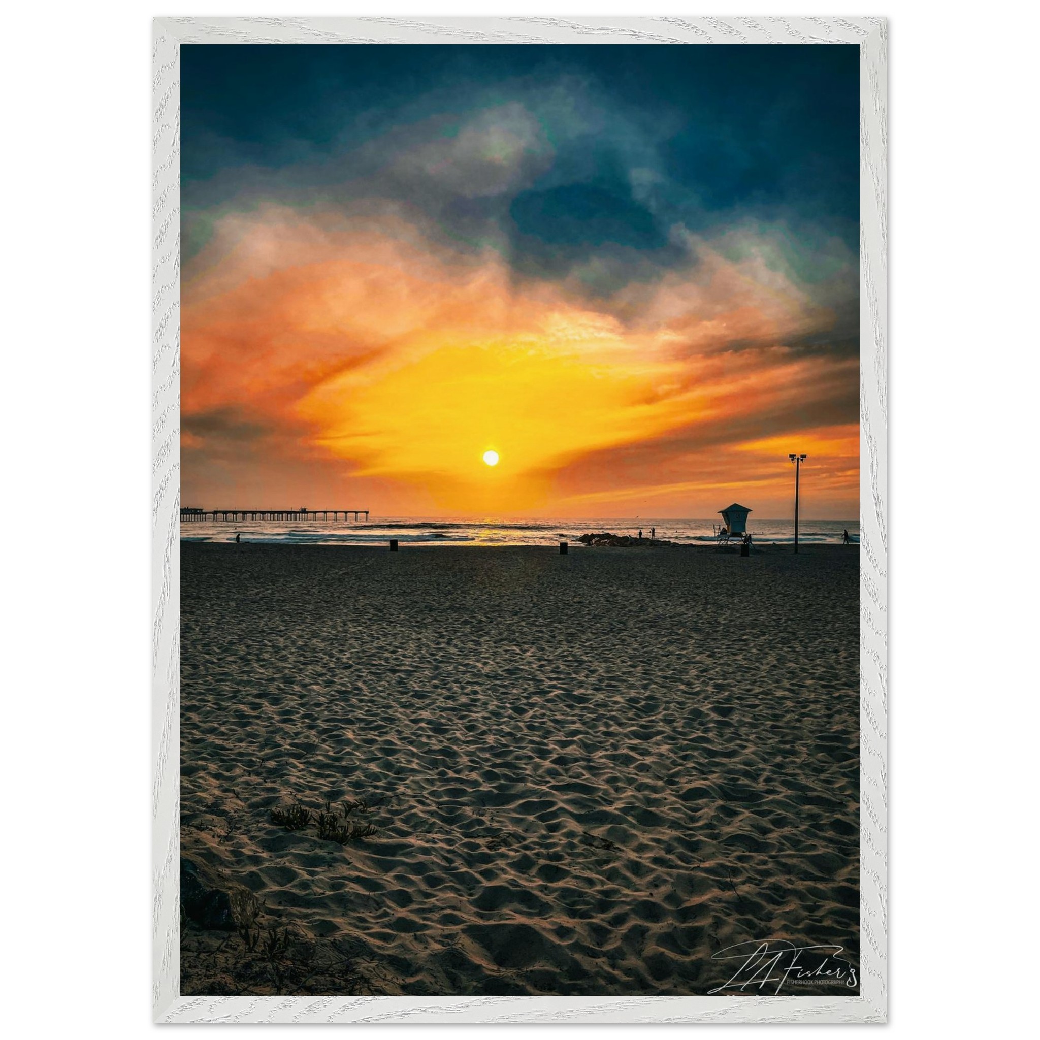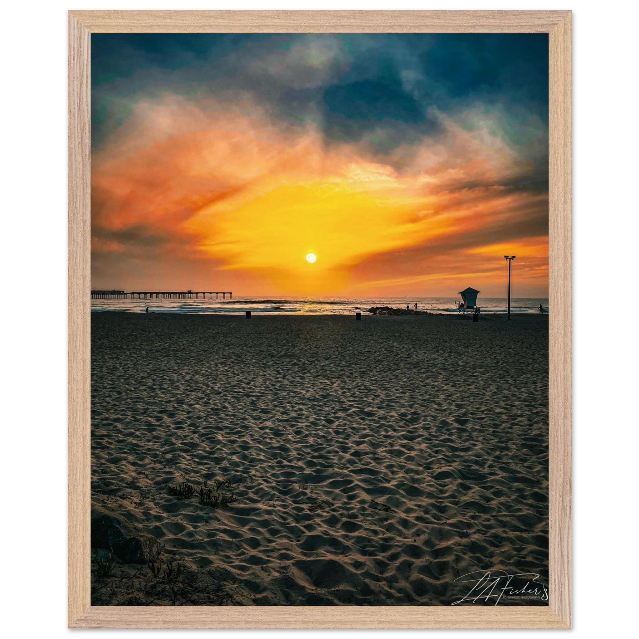 Imagine the serenity of a perfect sunset, captured forever in a masterpiece for your home. ‘Golden Hour Dreamscape’ transports you to a tranquil beach at dusk, where the sun dips below the horizon, painting the sky in breathtaking hues of orange, gold, and deep blue. This piece is a celebration of nature’s ephemeral beauty, inviting you to pause and find peace in its radiant glow. It’s the ideal touch to infuse your space with warmth and a sense of calm wonder.